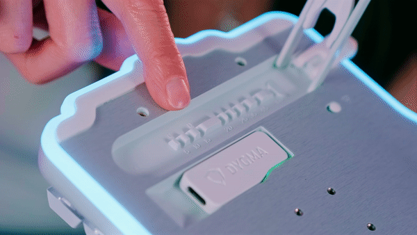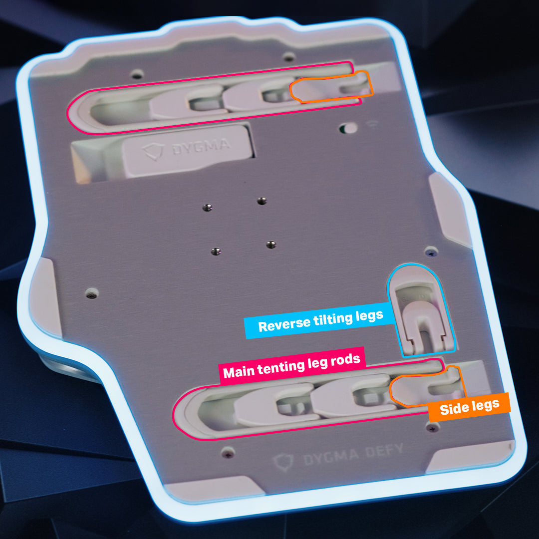 The tenting mechanism for the Dygma Defy has 11 different angle positions including tenting and reverse tilting.