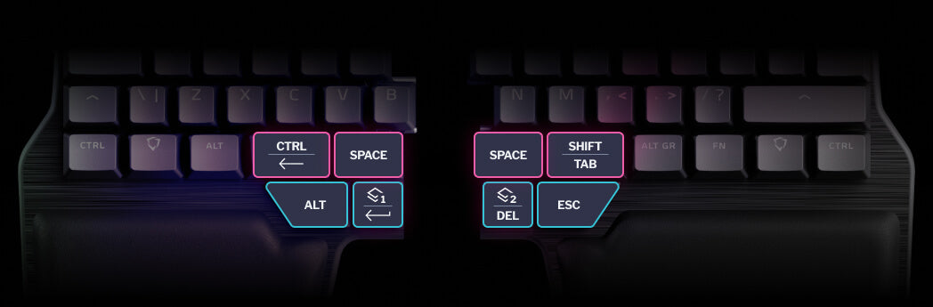 Dual-Function keys can perform different actions while held or tapped. You can have a Shift to layer on hold and enter on tap. Or Control on hold and Space on tap. Just as you like.