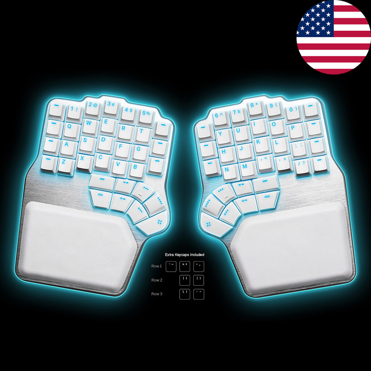 The Dygma Defy has Cherry profile keycaps and 16 special thumb keys.